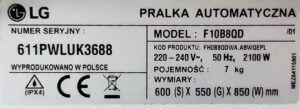 Rys.1. Tabliczka znamionowa pralki wraz z jej mocą znamionową.