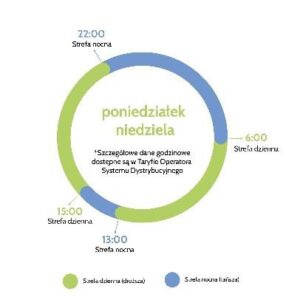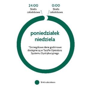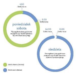 soboty i niedziele (cena w strefie dziennej 0,6212 zł/kWh, cena w strefie nocnej 0,6212 zł/kWh).